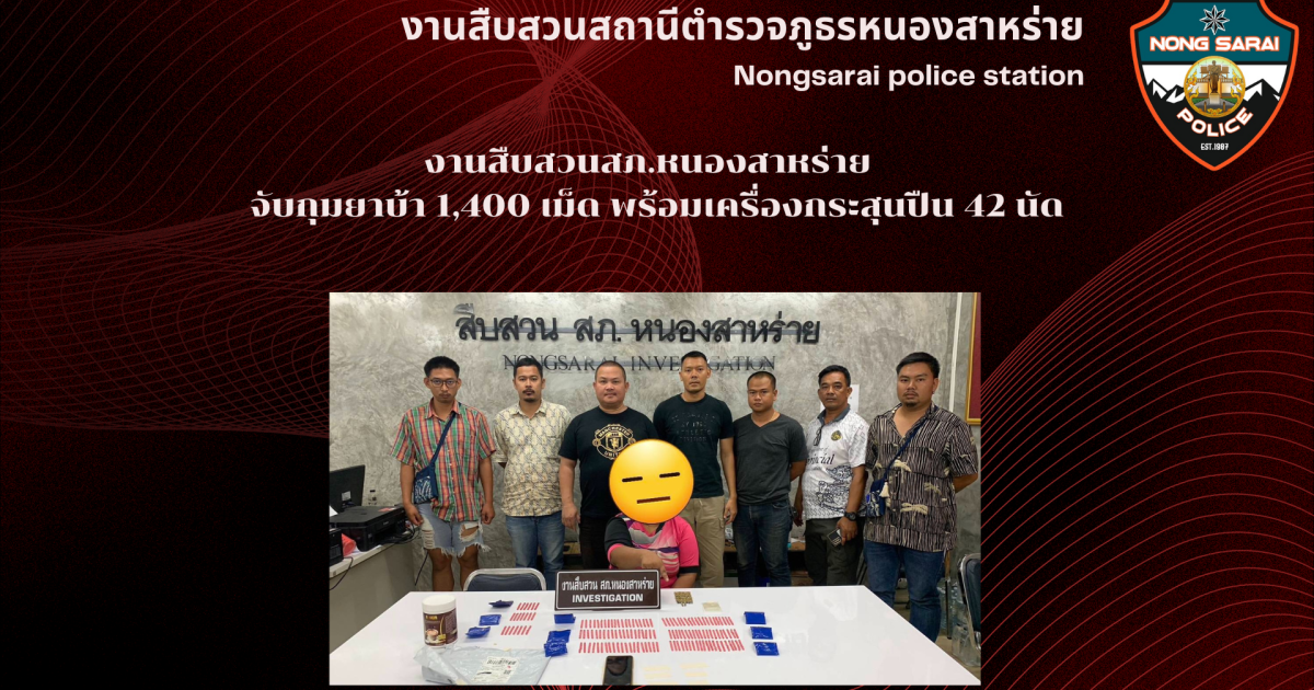งานสืบสวนสภ.หนองสาหร่าย จับกุมยาบ้า 1,400 เม็ด พร้อมเครื่องกระสุนปืน 42 นัด