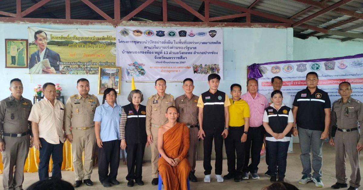 พ.ต.อ.ศุภชัย วิบูรณ์สุขสันต์ ผกก.สภ.หนองสาหร่ายพร้อมกับ ชุดปฏิบัติการชุมชนบำบัดอย่างยั่งยืนฯ และหน.ส่วนราชการ/ผู้แทน ภาคีเครือข่าย ฝ่ายปกครอง สาธารณสุข พัฒนาชุมชน ผู้บริหารท้องถิ่น ผู้นำชุมชน ต.วังกะทะ ร่วมพิธีเปิดโครงการชุมชนบำบัดอย่างยั่งยืนในพื้นที่แพร่ระบาดยาเสพติด ตามนโยบายเร่งด่วนของรัฐบาล ประจำปีงบประมาณ 2567 ณ ศาลาประชาคมหมู่บ้านหนองสองห้อง ม.13 ต.วังกะทะ อ.ปากช่อง จว.นครราชสีมาโดยมีนายคณัสชนม์ ศรีเจริญ นายอำเภอปากช่อง เป็นประธาน