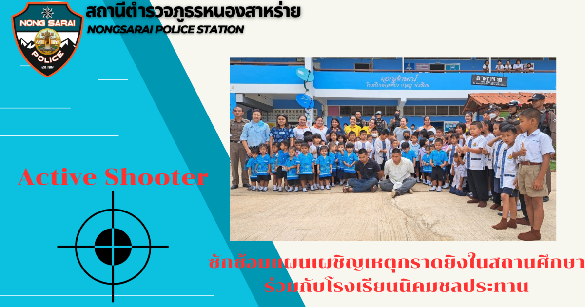 พ.ต.อ.ฐิติภัทร อุณเวทย์วานิช ผกก.สภ.หนองสาหร่าย มอบหมายให้ พ.ต.ท.เกรียงศักดิ์ อัฑฒพงษ์ รอง ผกก.ป.สภ.หนองสาหร่าย พ.ต.ต.พงษ์ธร ใหญ่นอก สวป.สภ.หนองสาหร่าย พร้อมด้วย ร้อยเวร (20) สายตรวจรถจักรยานยนต์ จราจร สภ.หนองสาหร่าย ออกประชาสัมพันธ์และแนะนำวิธีเอาตัวรอดให้กับโรงเรียนนิคมชลประทานสงเคราะห์ อ.ปากช่อง จ.นครราชสีมา ในด้านการป้องกันตนเอง ชึ่งเน้นการทำงานเชิงรุก เพื่ออบรมให้ความรู้ จำลองสถานการณ์ หากมีสถานการณ์ที่อาจกระทบต่อชีวิตและทรัพย์สิน ตลอดจนวิธีเอาตัวรอด เมื่อตกอยู่ในสถานการณ์ที่คับขัน ไม่ปลอดภัย (อาทิเช่น เหตุ Active Shooter บุคคลคลุ้มคลั่ง วิกลจริต หรือเหตุการณ์ที่อาจเป็นอันตราย หรือกระทบต่อชีวิตและทรัพย์สิน) โดยยึดหลัก Run Hide Fight “หนี ซ่อน สู้”ตามยุทธวิธีตำรวจ โดยมีขั้นตอนดังต่อไปนี้