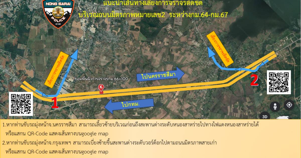 แนะนำเส้นทางเลี่ยงการจราจรบนถนนมิตรภาพ2 (18-28 ก.ย. 66)