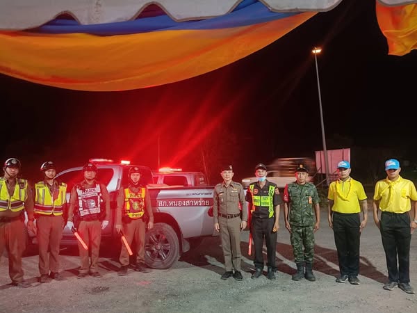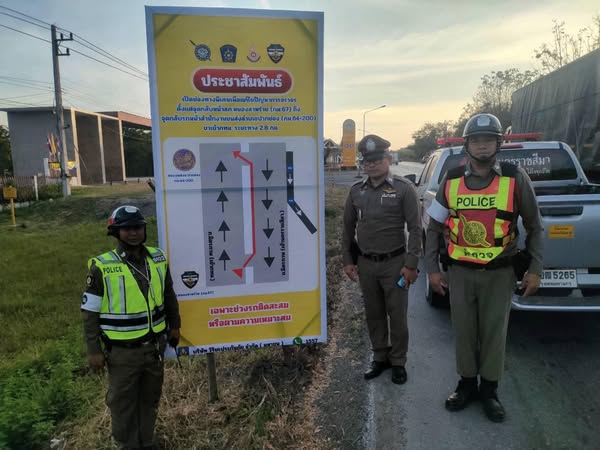 เจ้าหน้าที่จราจร สภ.หนองสาหร่าย ดำเนินการติดป้ายประชาสัมพันธ์ ในช่วงเทศกาลปีใหม่ พ.ศ.2568 (ป้ายเตือน